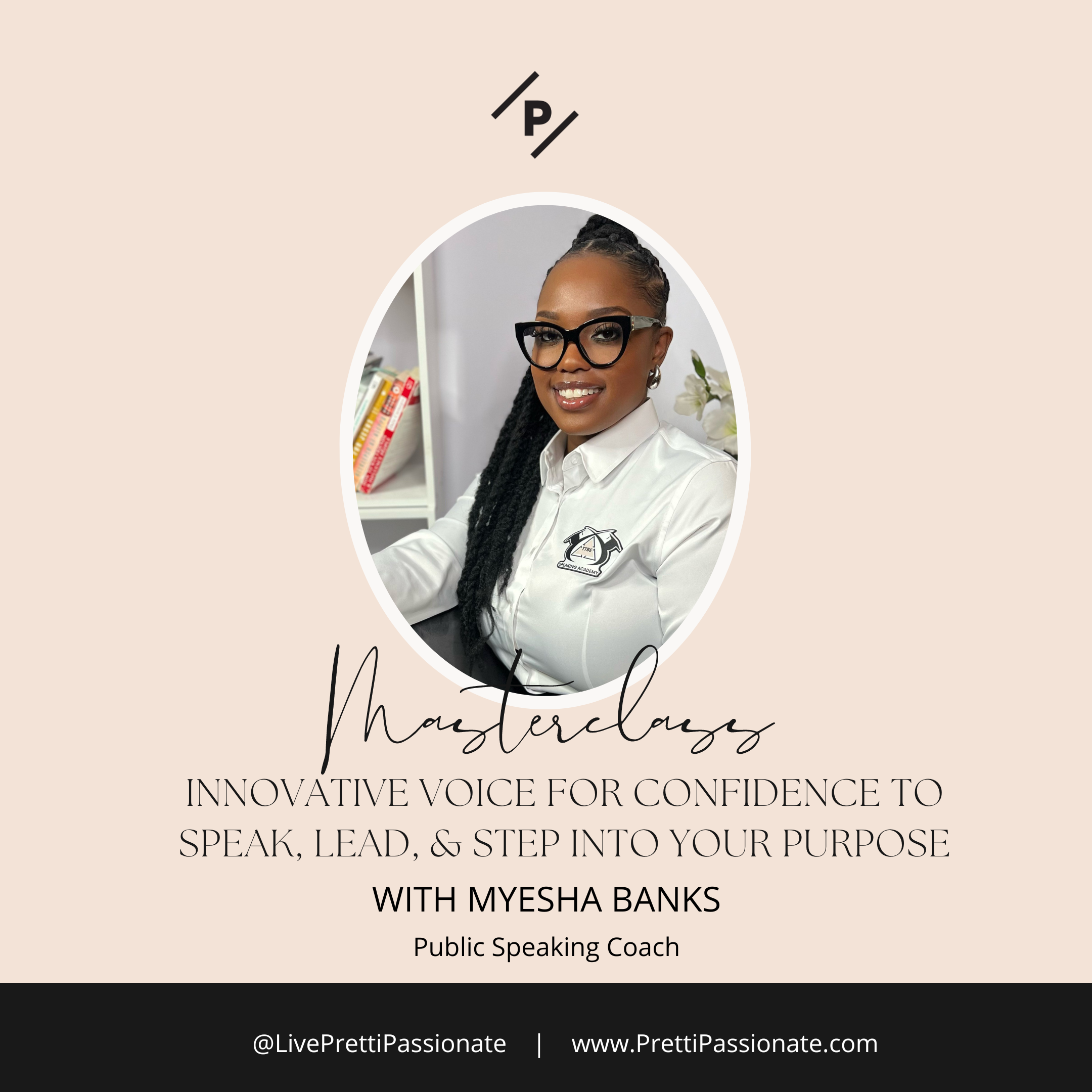 Confidence - This method will take the room. The moment someone hands you the mic or the floor to speak , this is your time to shine. We'll discuss key tools to stand in powerful confidence no matter what room you're standing in.